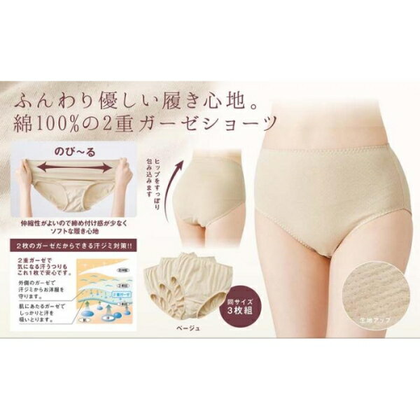 綿100%深ばき2重ガーゼショーツ 3枚組 ベージュ LL [キャンセル・変更・返品不可]