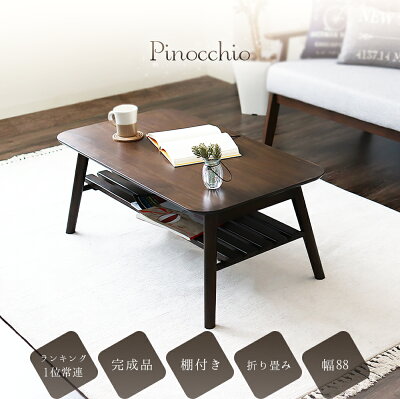 ローテーブル 折りたたみ 折れ脚 テーブル リビング センターテーブル ウォールナット 棚 木製 ブラウン モダン ブラウン ナチュラル ホワイト 白 棚付き レトロ 88幅 90 折りたたみテーブル おすすめ 新生活 ピノッキオ